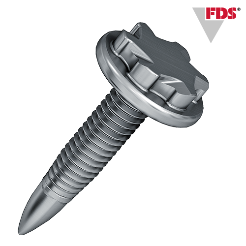 A pre-assembled embossed aluminium sealing washer, ensures an under-head seal of this special version of the FDS® screw. Current applications can be found in e-mobility in the area of the battery box fastening, where the sealing washer prevents water from entering. The waterproofi ng function (1 m water column / 24H) is achieved by the sealing surface of the aluminium washer. Pre-drilling of the clamping part is necessary for this application.